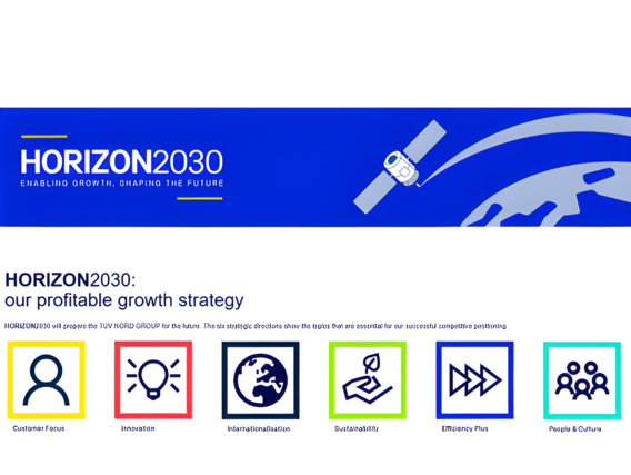 Με πυλώνες την πελατοκεντρική προσέγγιση, την καινοτομία, τη βιωσιμότητα, την έμφαση στην κοινωνία και τον άνθρωπο, η στρατηγική HORIZON2030 του TÜV NORD Group — και κατ’ επέκταση της TÜV NORD Ελλάδας — δημιουργεί ένα ισχυρό πλαίσιο σύνδεσης των κοινωνικών προτύπων με τα πρότυπα συστημάτων διαχείρισης.