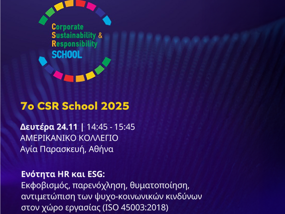Το CSR School επέστρεψε και φέτος, στο Αμερικανικό Κολλέγιο Ελλάδος στην Αγία Παρασκευή την Δευτέρα 24 Νοεμβρίου, φέρνοντας στο επίκεντρο κρίσιμα ζητήματα γύρω από την Εκπαίδευση, τη Βιωσιμότητα και την Εταιρική Διακυβέρνηση.