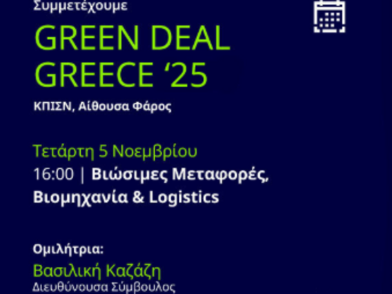 Ο Φορέας μας συμμετείχε ως Υποστηρικτής στο Green Deal Greece 2025, το συνέδριο που συνδιοργανώθηκε από το ΤΕΕ και το οικονομικό portal economix.gr την Τετάρτη 5 Νοεμβρίου 2025 στο ΚΠΙΣΝ, Αίθουσα Φάρος, και το οποίο φέτος επικεντρώθηκε σε ένα κρίσιμο ζήτημα για την επόμενη ημέρα της χώρας:
