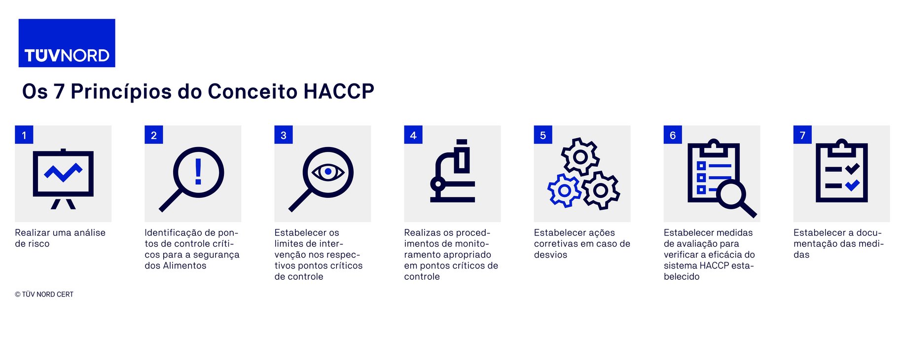 HACCP significa Análise de Perigos e Pontos Críticos de Controle. O certificado HACCP abrange processos na produção e no serviço de alimentação. Ele especifica os requisitos de higiene necessários para a produção de alimentos seguros e comestíveis. O certificado HACCP é aplicável a todas as empresas e a todas as etapas da cadeia alimentar : da produção primária, passando pelo processamento, armazenamento e transporte até o varejo.
