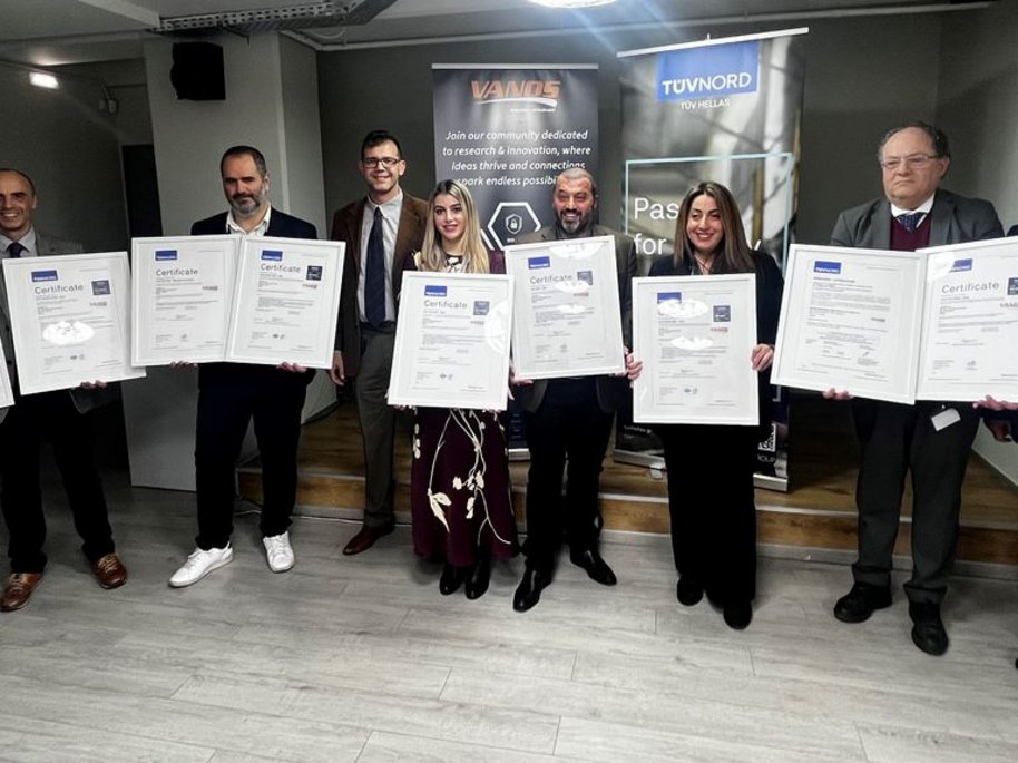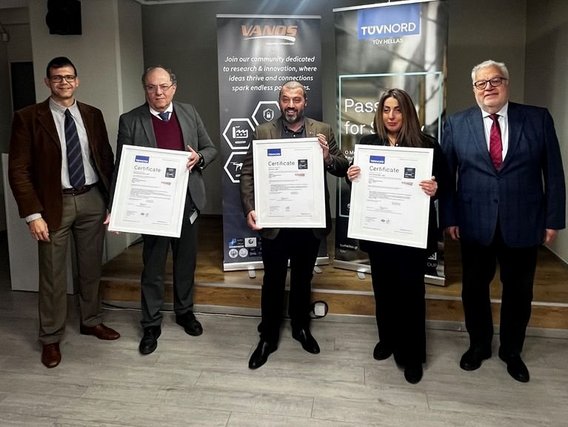 Επιβεβαιώνοντας τη δέσμευση της εταιρείας για διαρκή βελτίωση της ποιότητας, της ασφάλειας και της περιβαλλοντικής ευθύνης, ενισχύοντας παράλληλα τη θέση της στην ελληνική και διεθνή αγορά η VANOSS.A. έλαβε τις σχετικές πιστοποιήσεις στο πλαίσιο ειδικής εκδήλωσης παρουσία της διοίκησης της εταιρείας και της TÜV HELLAS (TÜV NORD).