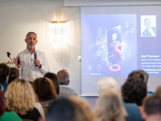 Τη διεθνή εμπειρία του TÜV NORD μετέφερε ο κ. Ralf Thomsen, Senior Vice President Medical Device International του TÜV NORD CERT ο οποίος, ανέδειξε τις βέλτιστες διεθνείς πρακτικές και παράλληλα παρουσίασε την στρατηγική και την εμπειρία από τους δύο Κοινοποιημένους Οργανισμούς του Ομίλου, TÜV NORD CERT GmbH 0044 και TÜV NORD POLSKA 2274.