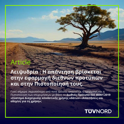 Γιατί σήμερα, περισσότερο από ποτέ άλλοτε, απαιτείται η εφαρμογή και η Πιστοποίηση των επιχειρήσεων με βάση το Διεθνές Πρότυπο ISO 46001:2019 «Σύστημα Διαχείρισης αποδοτικής χρήσης υδάτων—Απαιτήσεις και οδηγίες για τη χρήση»;