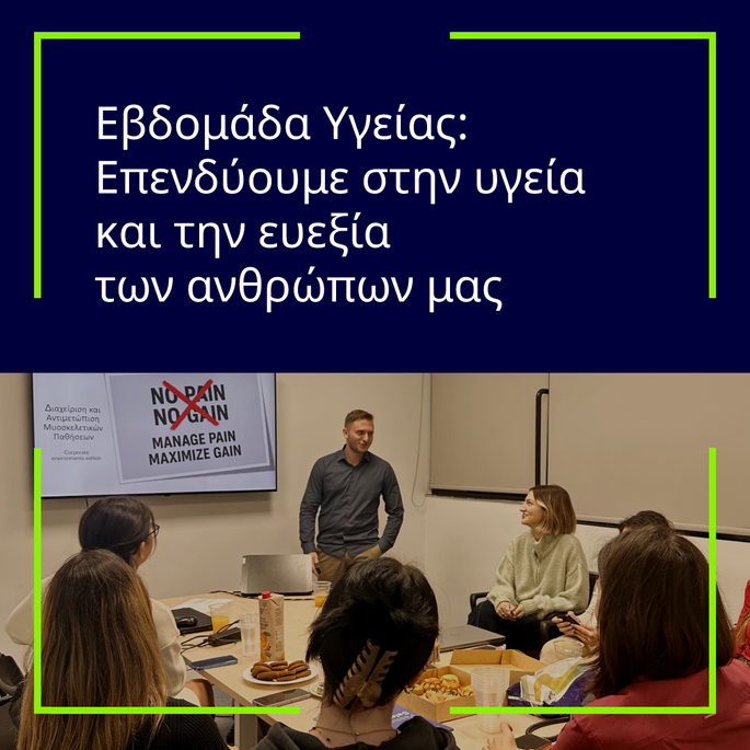 Η φροντίδα των ανθρώπων μας αποτελεί βασικό πυλώνα των αξιών μας. Για δεύτερη συνεχόμενη χρονιά, οργανώσαμε την Εβδομάδα Υγείας, 24-18 Νοεμβρίου 2025, στο πλαίσιο των δράσεών μας για την προαγωγή της υγείας, επιβεβαιώνοντας με πράξεις τη δέσμευσή μας για την στήριξη της ευεξίας στον χώρο εργασίας.