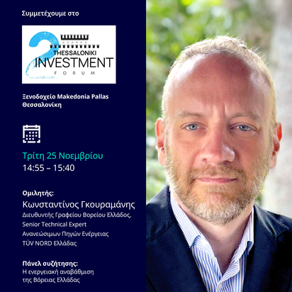 Ο Δρ Κωνσταντίνος Γκουραμάνης, Διευθυντής Γραφείου Βορείου Ελλάδος, Senior Technical Expert Ανανεώσιμων Πηγών Ενέργειας, έλαβε μέρος στο πάνελ συζήτησης με θέμα: