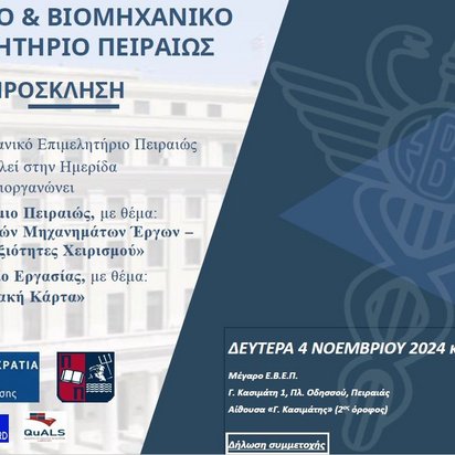 Τη Δευτέρα 04 Νοεμβρίου ο κ. Βιργίνιος Βουδούρης, Διευθυντής Πιστοποίησης Προσώπων TÜV NORD HELLAS θα απευθύνει ομιλία με θέμα : "Αξιοποίηση Ευέλικτων Μεθόδων Ενίσχυσης και Αξιολόγησης της Επάρκειας των Χειριστών Περονοφόρων Ανυψωτικών και η Αξία της Ασφαλούς Εργασίας".