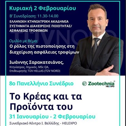 Στα πλαίσια της Έκθεσης Zootechnia 2025, πραγματοποιήθηκε το πολύ ενδιαφέρον συνέδριο, στο οποίο παρέθεσε ομιλία ο κ. Ιωάννης Σαρακατσιάνος, Κτηνίατρος, Χημικός, MSc QA & Επιθεωρητής TÜV HELLAS (TÜV NORD).