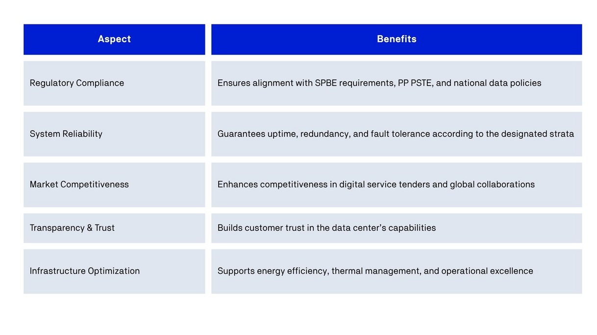 The certification process is carried out based on the data center strata, which reflects the level of availability of the data center’s functions and services.