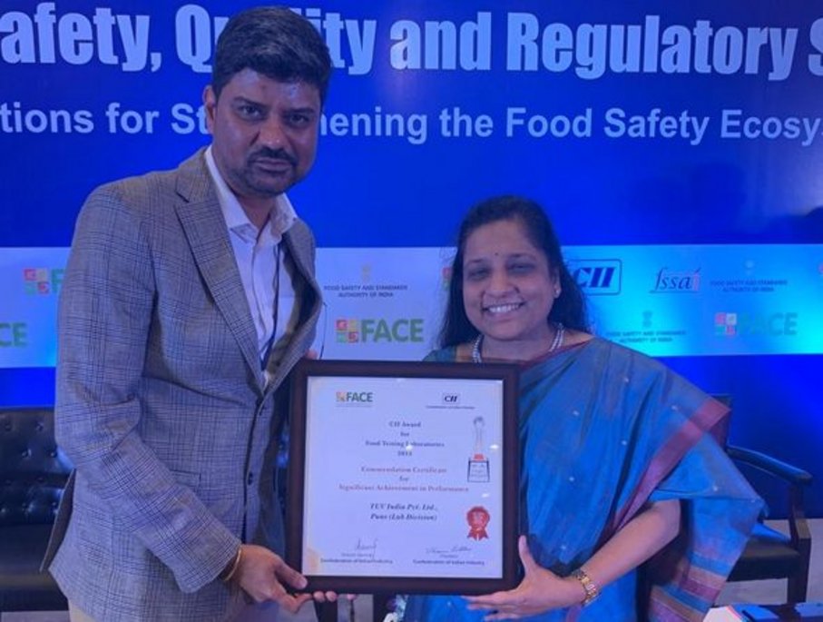 We are very happy to announce that TUV India's Food Testing Laboratory based at Pune has been recognized and awarded as the "SIGNIFICANT CONTRIBUTOR TO FOOD SAFETY" in the Food Laboratory Awards category. This recognition has been bestowed upon us by the elite jury panel of CII (Confederation of Indian Industries) which is one of the most coveted honour in the food sector space in this country.