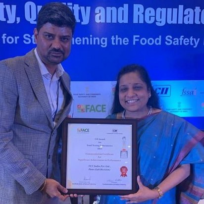 This was the highest award received by any commercial food testing laboratory in India. The award was announced at the 14th Food Safety, Quality and Regulatory Summit that was held in New Delhi on 11th Dec 2019. The award was presented by Mr.Pawan Agarwal the honorable CEO of FSSAI and received by Mr.Tarang Koppal (Vice President - Food Testing Services, TUV India) and Ms.Sonia Nandre (General Manager - Lab Operations, TUV India) during the grand awards function.