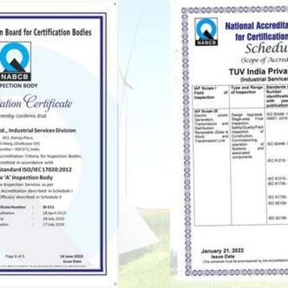 TUV India is pleased to announce being the first Inspection Body to receive the accreditation, Scope- 25 covering Electric power Generation, Transmission and Distribution- Renewable (Solar & Wind) and Transmission Line under ISO/ IEC 17020:2012, Conformity assessment — Requirements for the operation of various types of bodies performing inspection, Type A Inspection Body.