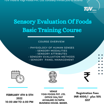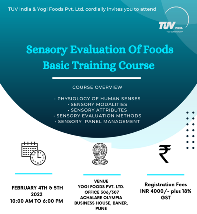 TUV India cordially invites you to attend basic training course on Sensory Evaluation Of Foods.