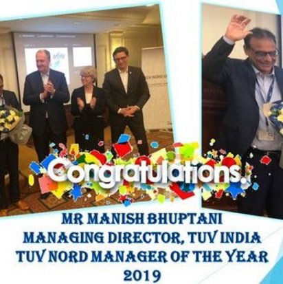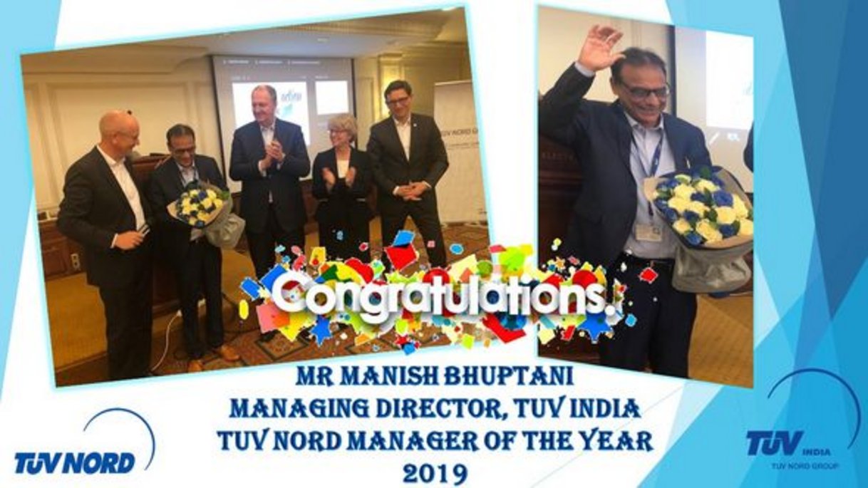 We are talking about none other than our Managing Director Mr Manish Bhuptani who has been conferred the prestigious award as “TUV NORD Manager of the year 2019” by Dr. Dirk Steinkamp, Chairman of the Executive Board of TUV NORD AG and Dr. Ralf Jung, Managing Director of TUV NORD Systems & TUV NORD International GmbH & Co. KG during the BU IS - Leadership Conference 2019 at Athens, Greece on 4th December 2019 in the presence of more than 110 Senior Leaders of the TUV NORD GROUP.