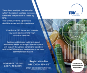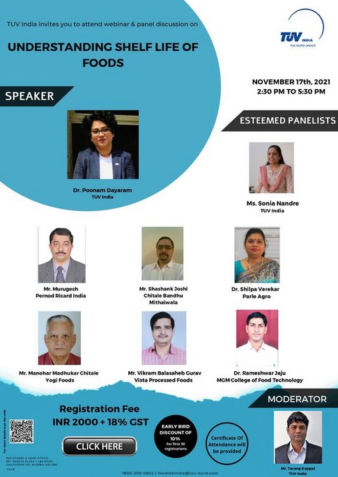 TUV India invites you to attend webinar & panel discussion on "Understanding Shelf Life of Foods"