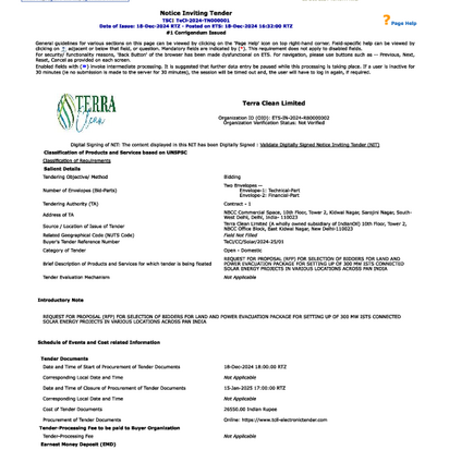 We, TUV India Pvt Ltd. (TÜV NORD GROUP) have been appointed as a Technical Consultant for Project Management Consultancy (PMC) Services for Setting Up Renewable Energy Projects in Various Locations across India for Renewable Project of Terra Clean Limited (a Wholly owned Subsidiary of Indian Oil Corporation limited). On behalf of Terra Clean Limited, we are delighted to share the first set of tender notices for solar project and inviting qualified bidders to collaborate on this opportunity. Please apply directly on Telecommunications Consultants India Limited (TCIL) website as stated below.