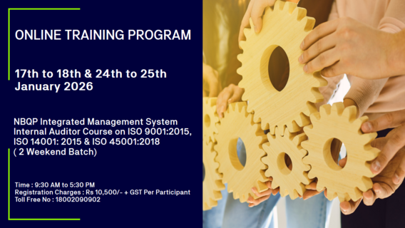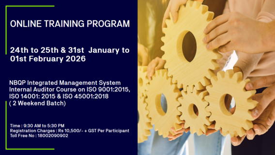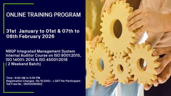 NBQP Integrated Management System Internal Auditor Course on ISO 9001:2015, ISO 14001: 2015 & ISO 45001:2018 ( 2 Weekend Batch)