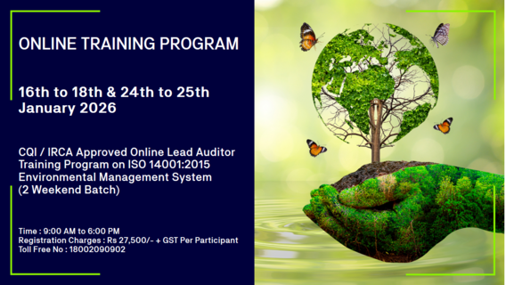 CQI / IRCA Approved Online Lead Auditor Training Program on ISO 14001:2015 Environmental Management System ( Weekend Batch)