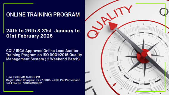 CQI / IRCA Approved Online Lead Auditor Training Program on ISO 9001:2015 Quality Management System ( 2 Weekend Batch)