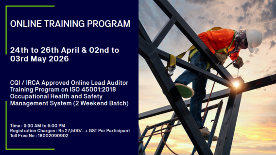 Integrated Management System Internal Auditor Course on ISO 9001:2015, ISO 14001: 2015 & ISO 45001:2018 (2 Weekend Batch) - 25th to 26th April & 02nd to 03rd May 2026