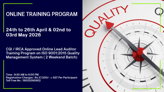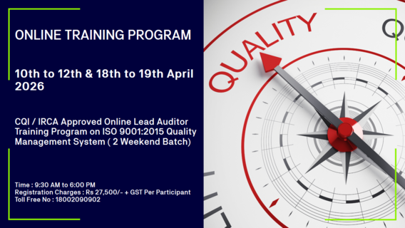 CQI / IRCA Approved Online Lead Auditor Training Program on ISO 9001:2015 Quality Management System (2 Weekend Batch) - 24th to 26th April & 02nd to 03rd May 2026