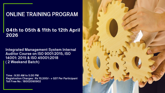 Integrated Management System Internal Auditor Course on ISO 9001:2015, ISO 14001: 2015 & ISO 45001:2018 (2 Weekend Batch) - 04th to 05th & 11th to 12th April 2026