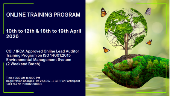 CQI / IRCA Approved Online Lead Auditor Training Program on ISO 14001:2015 Environmental Management System (Weekend Batch) - 10th to 12th & 18th to 19th April 2026