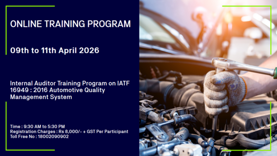 Internal Auditor Training Program on IATF 16949 : 2016 Automotive Quality Management System - 09th to 11th April 2026