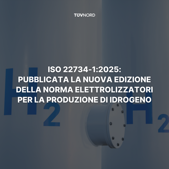 ISO 22734-1:2025 - pubblicata la nuova edizione della norma per elettrolizzatori per la produzione di idrogeno