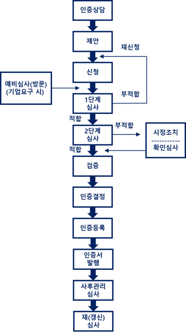 - 최초 (신규) 인증의 경우 인증 만료 이후 6개월 이내 인증 신청 및 심사를 진행하여 모든