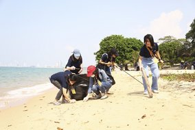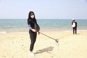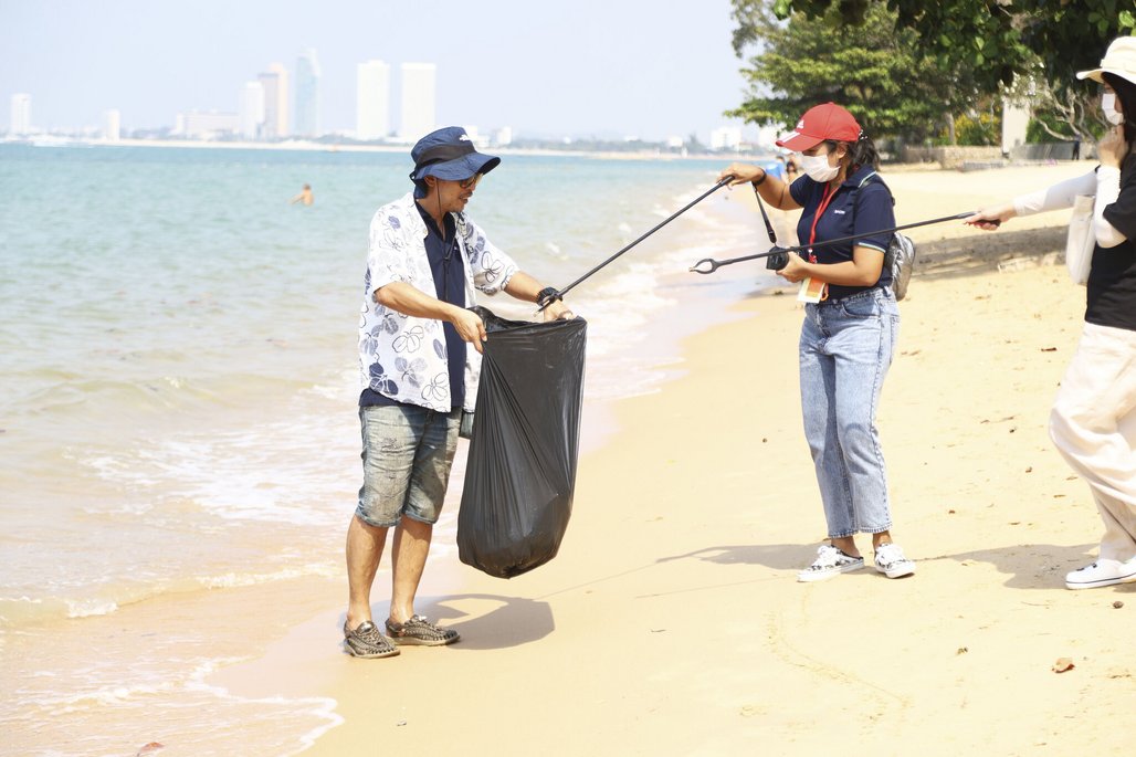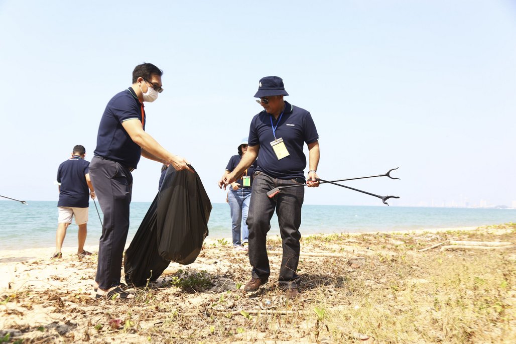 The volunteer activity from employees of TUV NORD Thailand to support company’s sustainability commitment in helping beach cleanup at Tawanron Beach, Chonburi Province, Thailand.