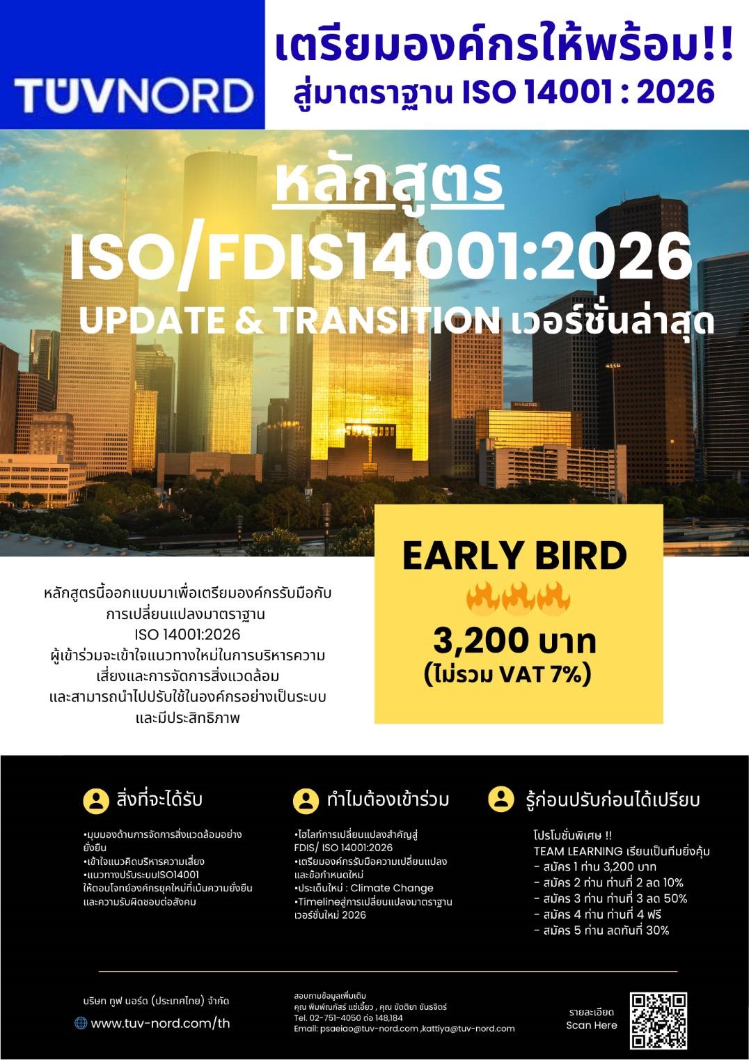 Despite all the developments, it can happen that employees' skills are not developed at the pace at which they should be. Training can bridge this gap and help participants who come from different fields or workplaces to get to know each other to form a collaborative network. Training courses organized by TUV NORD (Thailand) can be held regularly throughout the country, allowing an organization to choose according to preference and suitability.