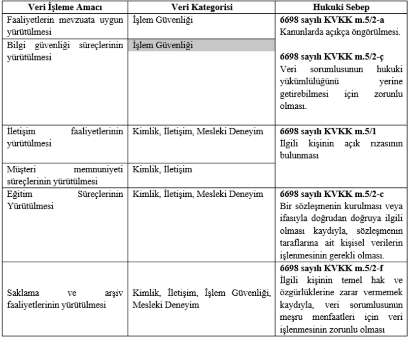 2. Kişisel Verilerin İşlenme Amaçları ve Hukuki Sebebi