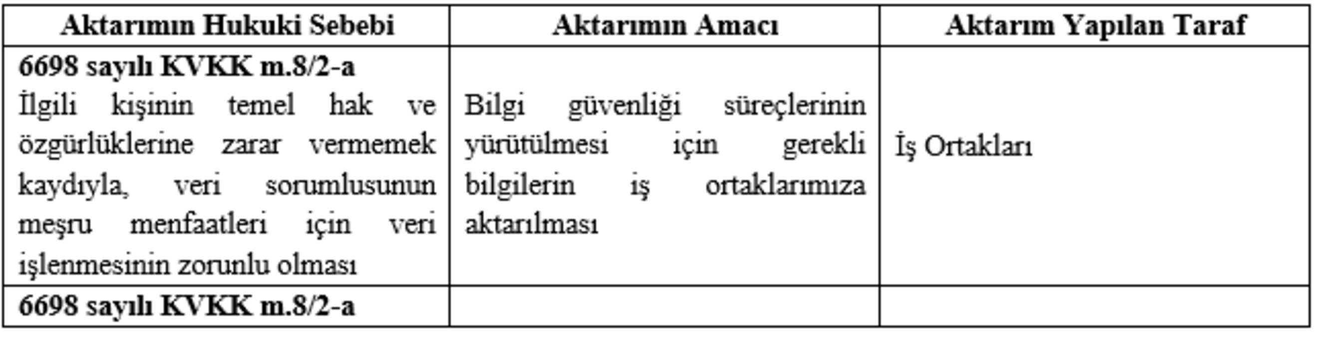 Kişisel verileriniz aşağıdaki şartlar dâhilinde üçüncü kişilere aktarılabilmektedir;