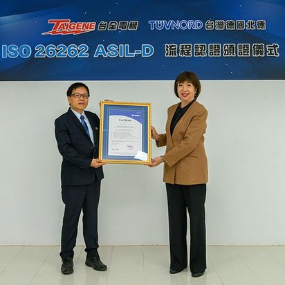 TUV NORD集團是德國最具公信力的驗證機構,成立已超過150年,是全球領先的第三方檢測認證機構。TUV NORD Taiwan(台灣北德)在台灣地區深耕超過30年,長期致力於汽車電子市場的服務,專業團隊多來自科技產業背景的專家。此次的ISO 26262:2018 ASIL-D流程認證證明了台全電機遵循國際標準、追求卓越的決心和實力,也同時也展現了TUV NORD Taiwan在車載領域提供一站式服務的能力,與客戶攜手一同為車用安全的未來做好全面準備。