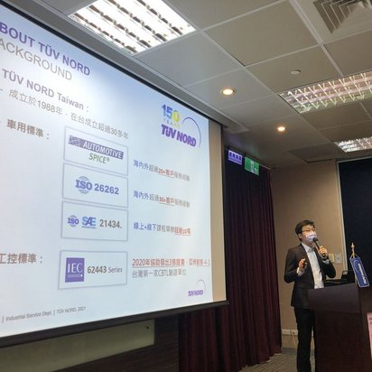 TUV NORD 台灣區資深技術經理林正偉於台北國際車用電子展,受中華民國電子零件認證委員會邀請在車輛產業之汽車電子品質認證暨網路安全策略與佈局技術研討會,分享車輛產業之網絡安全策略與佈局,盤點現階段重要的車用標準,從品質管理IATF 16949,VDA6.X,功能安全ISO 26262,軟體流程ASPICE與網絡安全ISO 21434, TISAX等,協助廠商了解公司產品所需要通過的標準。