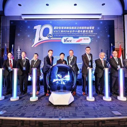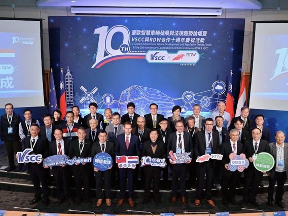 財團法人車輛安全審驗中心與荷蘭車輛管理機構RDW為慶祝雙方合作達十年里程碑,3月13於集思交通部國際會議中心舉行「臺歐智慧車輛發展與法規趨勢論壇暨VSCC與RDW合作十週年慶祝活動」。
