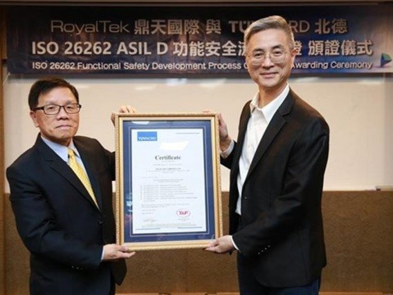 鼎天國際總經理陳俊彥表示:「獲得 ISO 26262 驗證,是開啟我們在車用安全領域一個新的篇章,未來,RoyalTek 將持續深化產品安全設計,提升技術創新能力,以提供更高品質、更安全的車用電子產品,為全球客戶創造更大價值。」